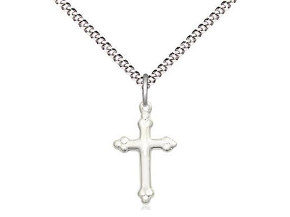 Sterling Silver Cross Pendant on a 18 inch Light Rhodium Light Curb Chain.