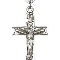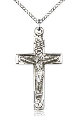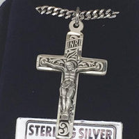 Sterling Silver Crucifix Pendant on a 18 inch Sterling Silver Light Curb Chain