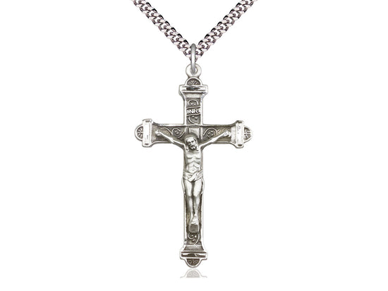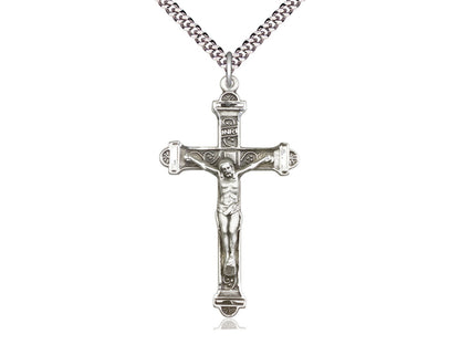 Sterling Silver Crucifix Pendant on a 24 inch Light Rhodium Heavy Curb Chain.