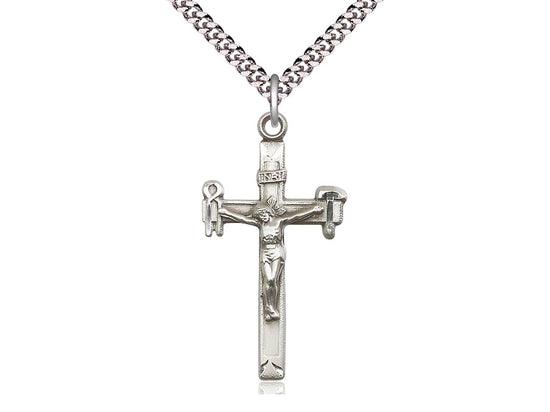 This Sterling Silver Crucifix Necklace features a beautifully detailed crucifix medal on a 24-inch Light Rhodium Heavy Curb Chain. Designed for durability and elegance, it’s a perfect expression of faith that complements any style. The endless chain ensures a secure and comfortable fit for everyday wear.