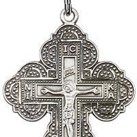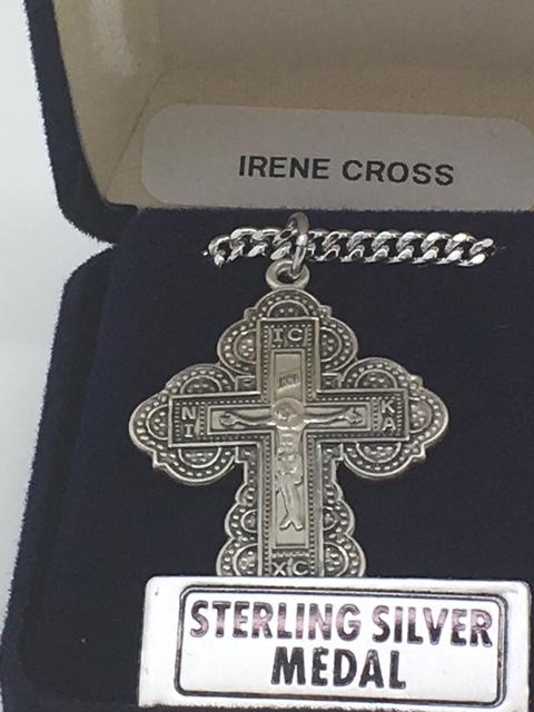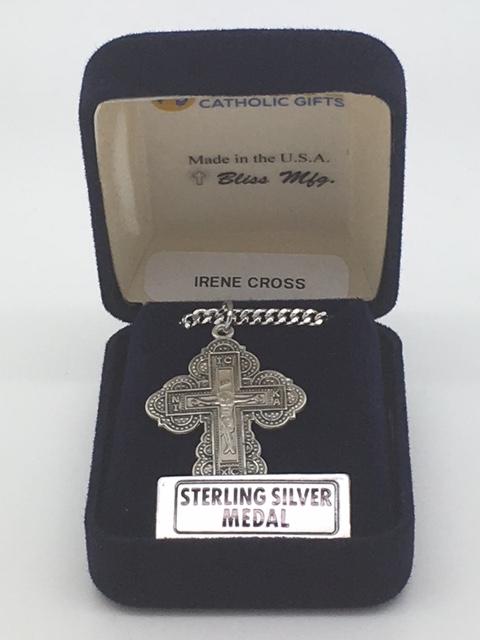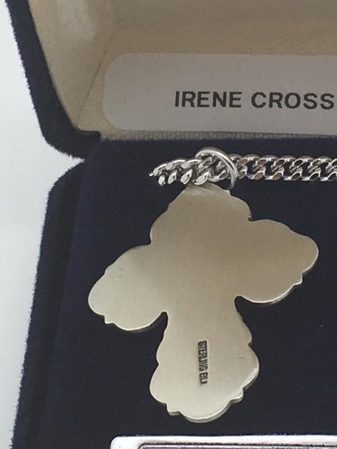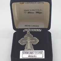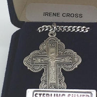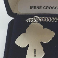 Sterling Silver Irene Cross Pendant on a 24 inch Light Rhodium Heavy Curb Chain