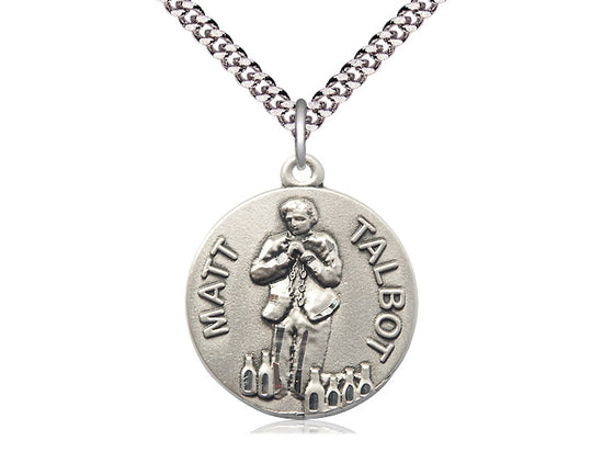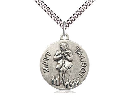 Sterling Silver Matt Talbot on a 24 inch Light Rhodium Heavy Curb Chain.