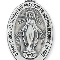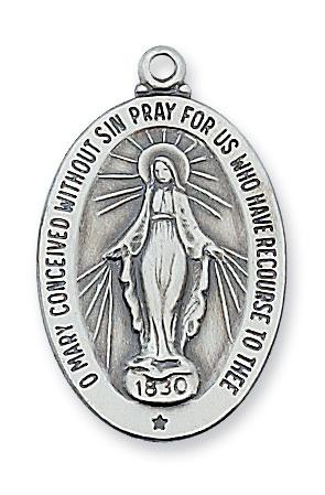 This stunning Sterling Silver Miraculous Medal with Blue Stones comes with an 18" Stainless Steel Chain and a deluxe gift box included. Its dimensions are a perfect 1", making it a truly special and meaningful piece to add to your collection.