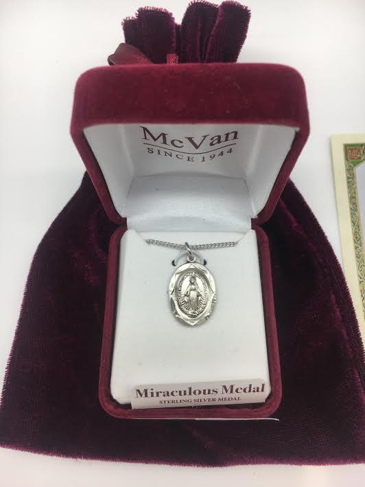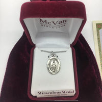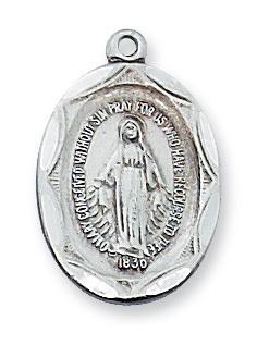 and Bag are included with the Sterling Silver Miraculous Medal (3/4"x 1/2") on an 18" Rhodium plated chain, making it a complete and convenient package for gifting. This medal is made of high-quality sterling silver and features precise measurements of 3/4"x 1/2", perfect for everyday wear. Its elegant and durable rhodium plating ensures long-lasting shine and luster.