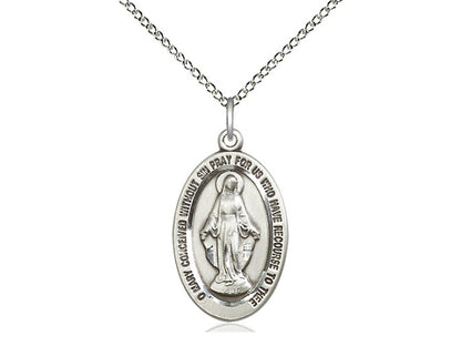 Sterling Silver Miraculous Pendant on a 18 inch Sterling Silver Light Curb Chain