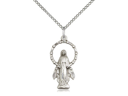 Sterling Silver Miraculous Pendant on a 18 inch Sterling Silver Light Curb Chain