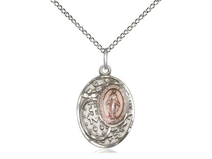 Sterling Silver Miraculous Pendant on a 18 inch Sterling Silver Light Curb Chain