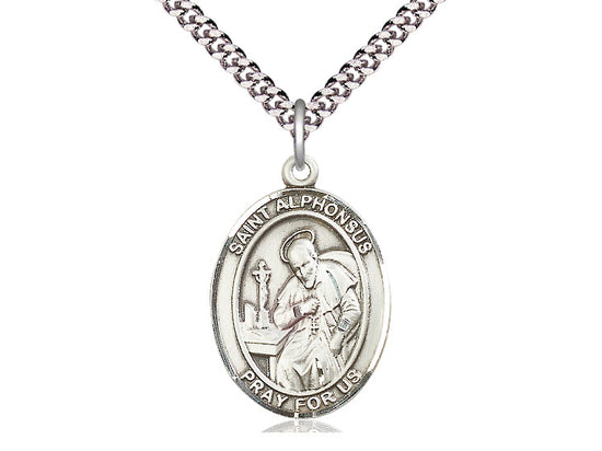 This elegant Sterling Silver St. Alphonsus Pendant features a 1-inch tall by 3/4-inch wide medal, beautifully suspended on a 24-inch light rhodium heavy curb chain. Known as the Patron Saint of Confessors and Theologians, St. Alphonsus is honored with this timeless design, offering both spiritual significance and a polished, durable finish. Perfect for daily wear or as a thoughtful gift, this pendant serves as a reminder of faith and guidance.