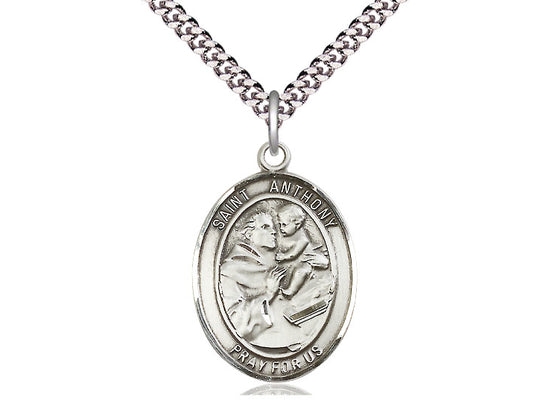 This stunning St. Anthony of Padua pendant is crafted from sterling silver and features a 1-inch tall, 3/4-inch wide medal on a 24-inch light rhodium heavy curb chain. St. Anthony, the Patron Saint of Lost Articles and the Poor, offers both spiritual significance and a stylish, timeless accessory. Perfect for daily wear or as a meaningful gift, this piece combines elegance and faith.