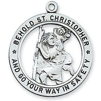 Explore the power and meaning of faith with our Sterling Silver St. Christopher medal on a 24" stainless steel chain. This beautiful piece comes with a deluxe gift box and measures 1 inch, making it the perfect accessory to showcase your beliefs. Let this stunning medal be a symbol of protection and guidance on your spiritual journey.