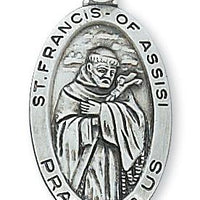The Sterling Silver St Francis Medal, measuring 1" inch and featuring an 18" inch rhodium plated chain, comes with a deluxe box. This medal is dedicated to St. Francis, the Patron Saint of Animals.