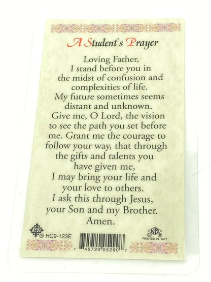Carry your faith with you everywhere with this durable laminated Holy Card, featuring a striking image of your chosen saint paired with an inspiring prayer. The protective plastic coating ensures your spiritual companion stays pristine through daily use, making it perfect for students, prayer devotion, or as a meaningful gift. A timeless way to strengthen your connection to the saints.