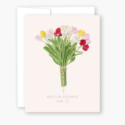 Praying a Rosary for a loved one and their intentions, and want to send them the encouragement of your prayers? Send them this card, featuring a bouquet of beautiful mixed tulips wrapped with a Rosary, as a symbol of your prayers for them.