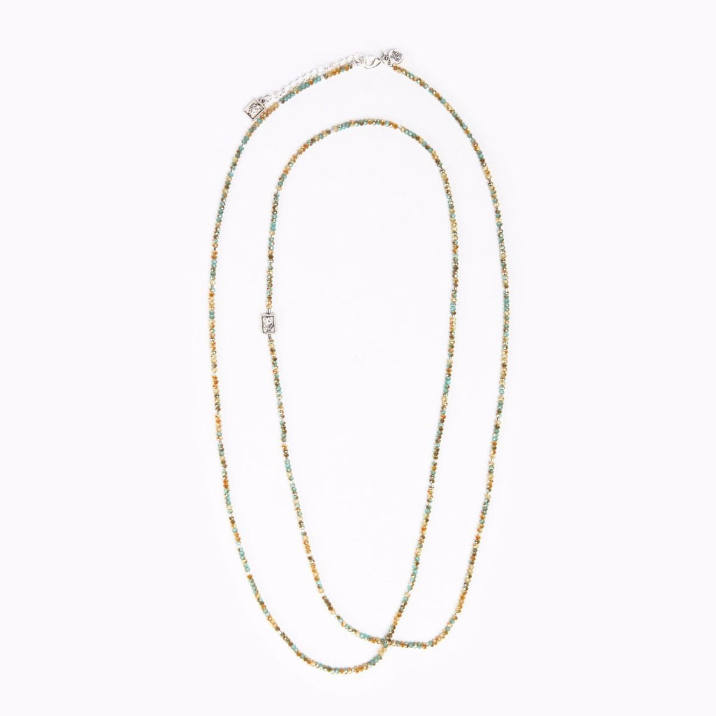 qua and topaz 3mm crystals, silver dipped bugle beads, two scapular medals, 52" rope with a 2" extender. The Lord's Prayer Morse Code Prayer Rope can be worn as a single or double strand necklace or as a wrap bracelet. The Lord's Prayer Morse Code Prayer Rope comes in a box with an inspirational card.