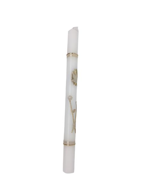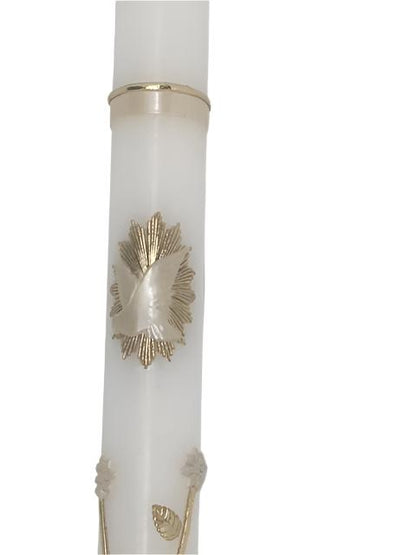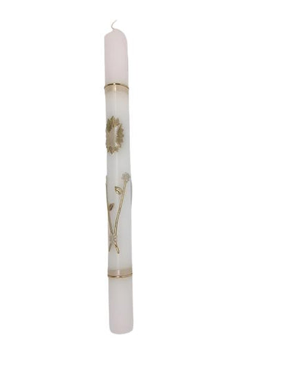Elegant Candle with Gold outlined Holy Spirit and Flowers. Great Gift for Baptism. This will accent that special day!