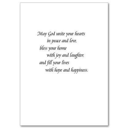 May God unite your hearts in peace and love, bless your home with joy and laughter, and fill your lives with hope and happiness.Bible Verse: